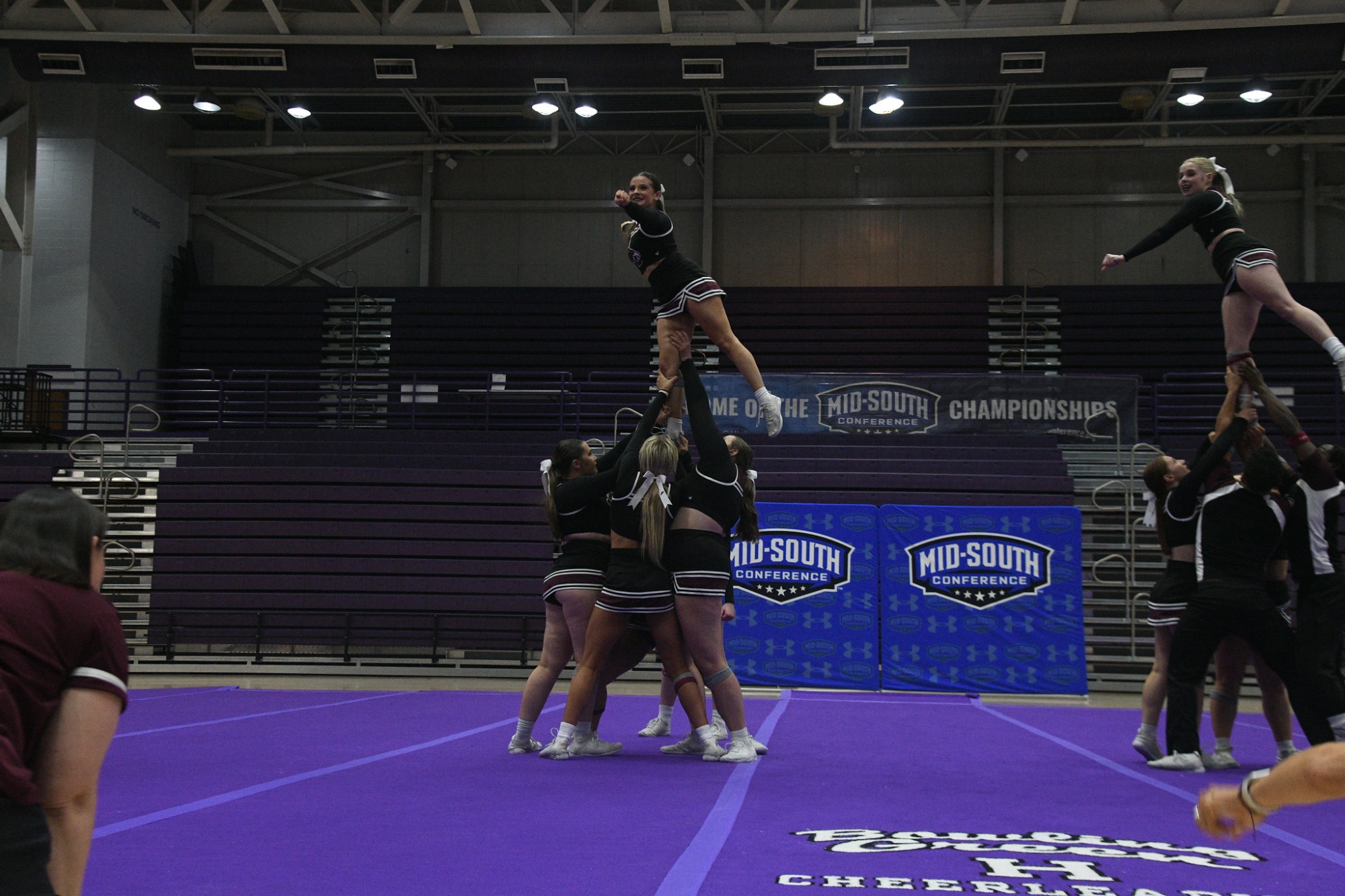 GEORGETOWN, Ky.--Cumberland Cheer competed in two rounds today at the Tiger Invitational finishing in fifth in round one and improving to third in round two.